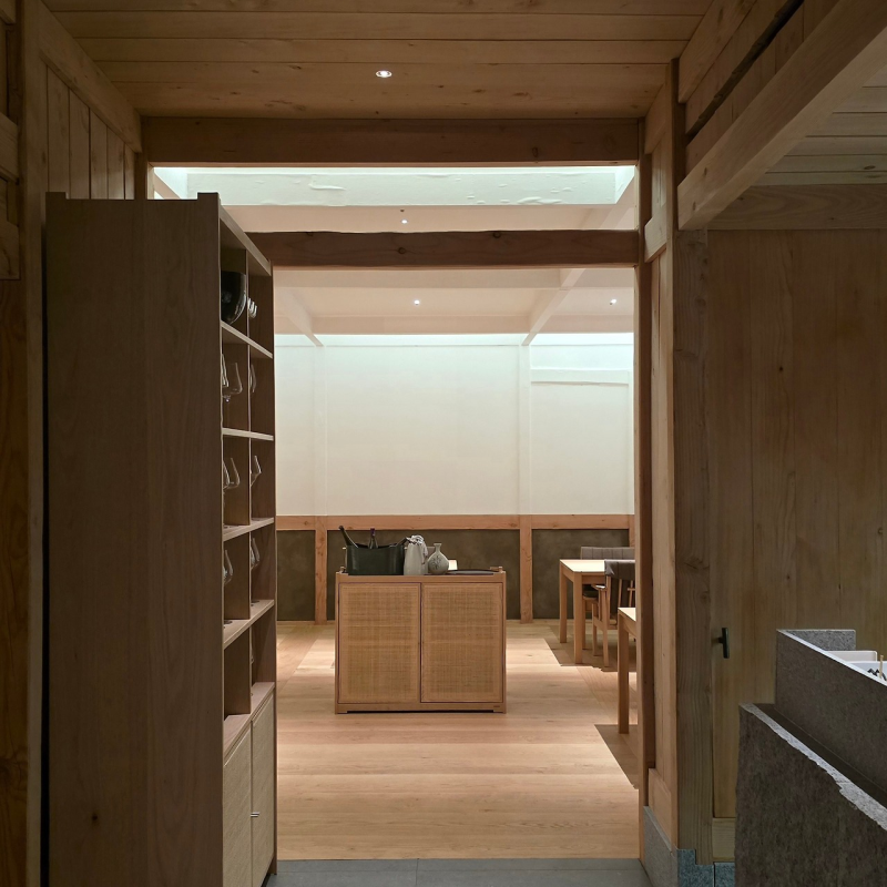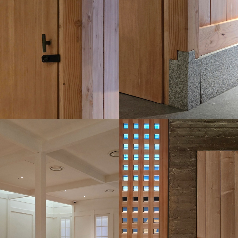 하루에 한 뼘 정도밖에 작업할 수 없는 황토벽, 본드뿐 아니라 못 하나도 사용하지 않고 한 켜 한 켜 정성스레 짜맞춘 목재, 곱게 바른 한지, 단정한 문고리와 경첩, 세월의 흐름을 담은 대들보, 그리고 은은한 나무의 향과 부드럽고 따스한 조도까지. 김대균 건축가의 시간과 철학이 오롯이 담긴 이 공감각적인 공간은 착착건축사무소 작품이다.