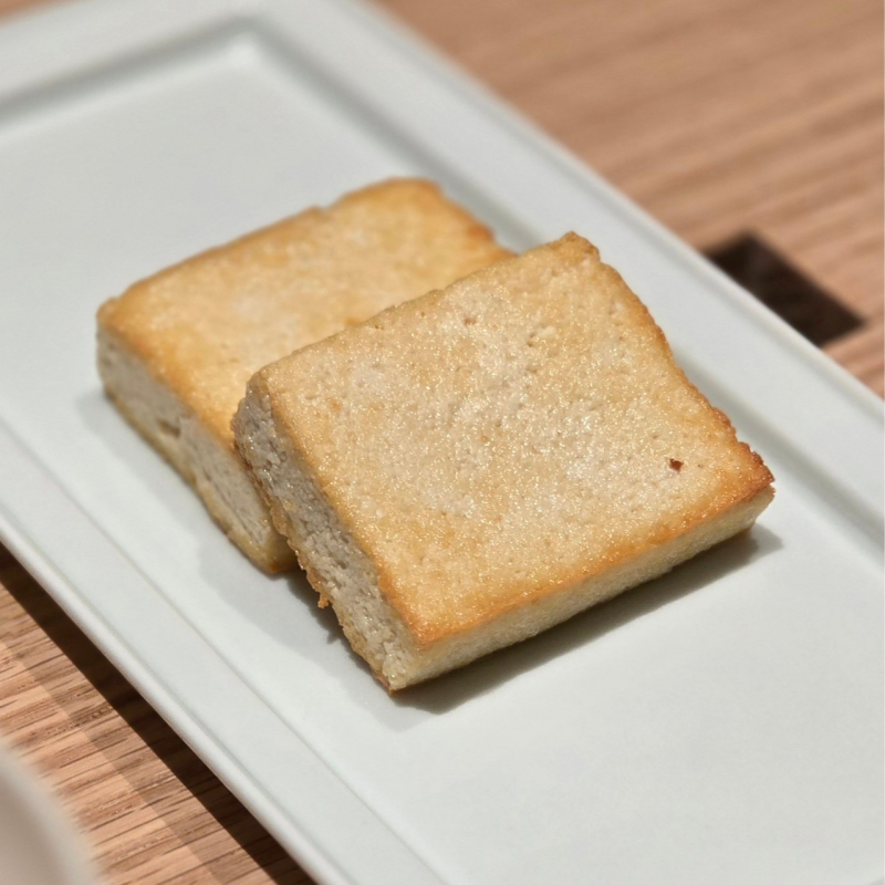 김대천 셰프가 수년 전 조선시대 후기 조포사였던 진관사의 절밥을 먹고 그 맛에 반해서, 사찰 요리를 깊이 연구하기 시작했다고 한다. 전통 방식으로 만든 두부를 별다른 양념 없이 들기름에 곱게 지져 내니 자연의 풍미가 그대로 담겨 있다.